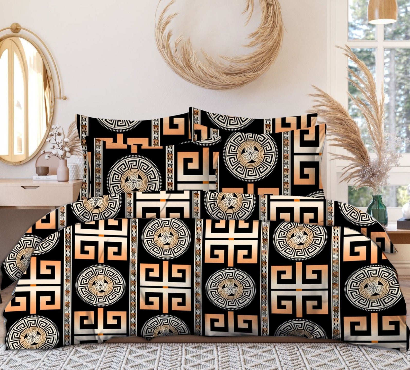 Grey -Black Cotton Elastic 160 TC King Bedsheet with 2 Pillow Covers